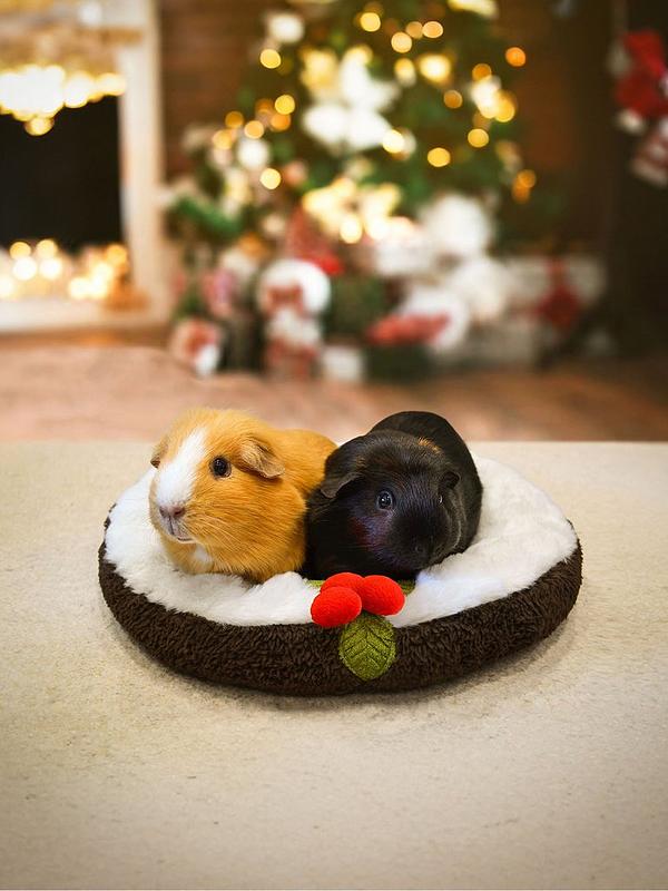 The Rosewood Christmas Pudding Snuggle Bed is a soft, festive bed for small animals, including guinea pigs, ferrets, small rabbits and small cats. Designed to make them feel secure with its deep, plush feel, featuring a unique pudding design and a wipe-clean base, and is machine washable for easy care.